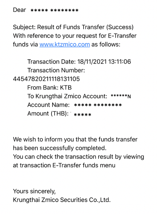 6. After transferred, you will receive the confirmation email by Krungthai XSpring.