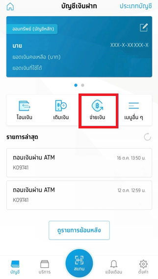 - จำนวนเงินที่ต้องการ และกดปุ่ม จ่ายเงิน