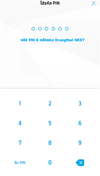 5. ตรวจสอบความถูกต้อง และกดปุ่ม ยืนยัน หน้าจอจะขึ้นให้ใส่ รหัส PIN 6 หลักของ Krungthai NEXT