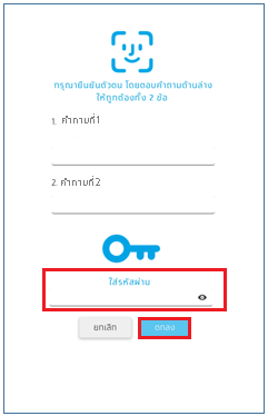 4. ตอบคำถามให้ถูกทั้ง 2 ข้อ , ใส่รหัสผ่าน และกด ตกลง